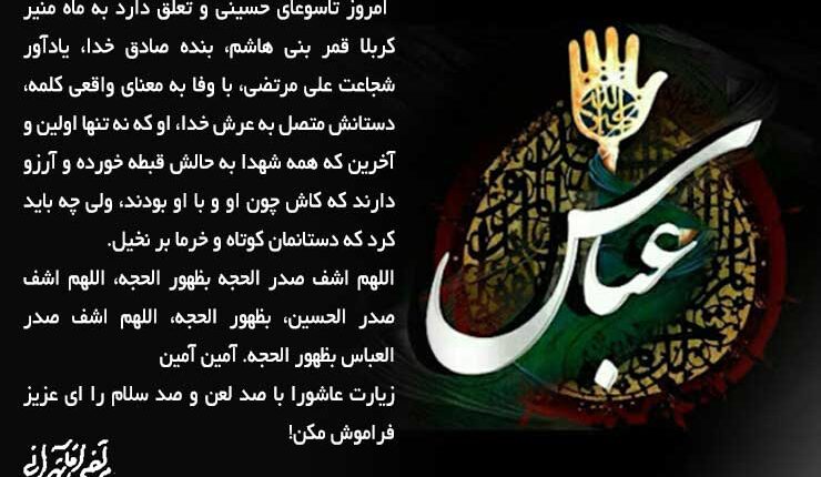 امروز تاسوعای حسینی و تعلق دارد به ماه منیر کربلا قمر بنی هاشم، بنده صادق خدا، یادآور شجاعت علی مرتضی، با وفا به معنای واقعی کلمه، دستانش متصل به عرش خدا، او که نه تنها اولین و آخرین که همه شهدا به حالش قبطه خورده و آرزو دارند که کاش چون او و با او بودند، ولی چه باید کرد که دستانمان کوتاه و خرما بر نخیل.
