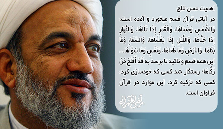 در آیات و روایات تشویق به حسن خلق است، تعریف از متخلق به اخلاق الله بودن هست، اما عین این واژه در قرآن نیامده. البته در جمع اخلاقیات بد محکوم شده و اخلاقیات خوب تحسین شده. مثلا فَلَا تُزَکُّوا أَنْفُسَکُمْ؛ تعریف خودتان را نکنید؛ خودشگفتی کار خوبی نیست؛ تکبر نداشته باشید. خدای متعال بدش میاید از انسانی که در کار دیگران تجسس میکند، از کسی که غیبت میکند؛ وَلَا یَغْتَبْ بَعْضُکُمْ بَعْضًا. غیبت نکنند بعضی از بعضی دیگر. حسودی بد است، حسادت بد است. این موارد آمده.