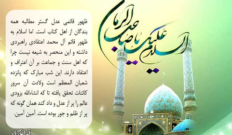 ظهور قائمی عدل گستر مطالبه همه بندگان از اهل کتاب است. اما اسلام به ظهور قائم آل محمد اعتقادی راهبردی داشته و این منحصر به شیعه نیست چرا که اهل سنت و جماعت بر آن اعتراف و اعتقاد دارند. این شب مبارک که پانزده شعبان المعظم است ولادت آن سرور کائنات تحقق یافته تا که انشاءالله بزودی عالم را پر از عدل و داد کند همان گونه که پر از ظلم و جور بوده است. آمین آمین.