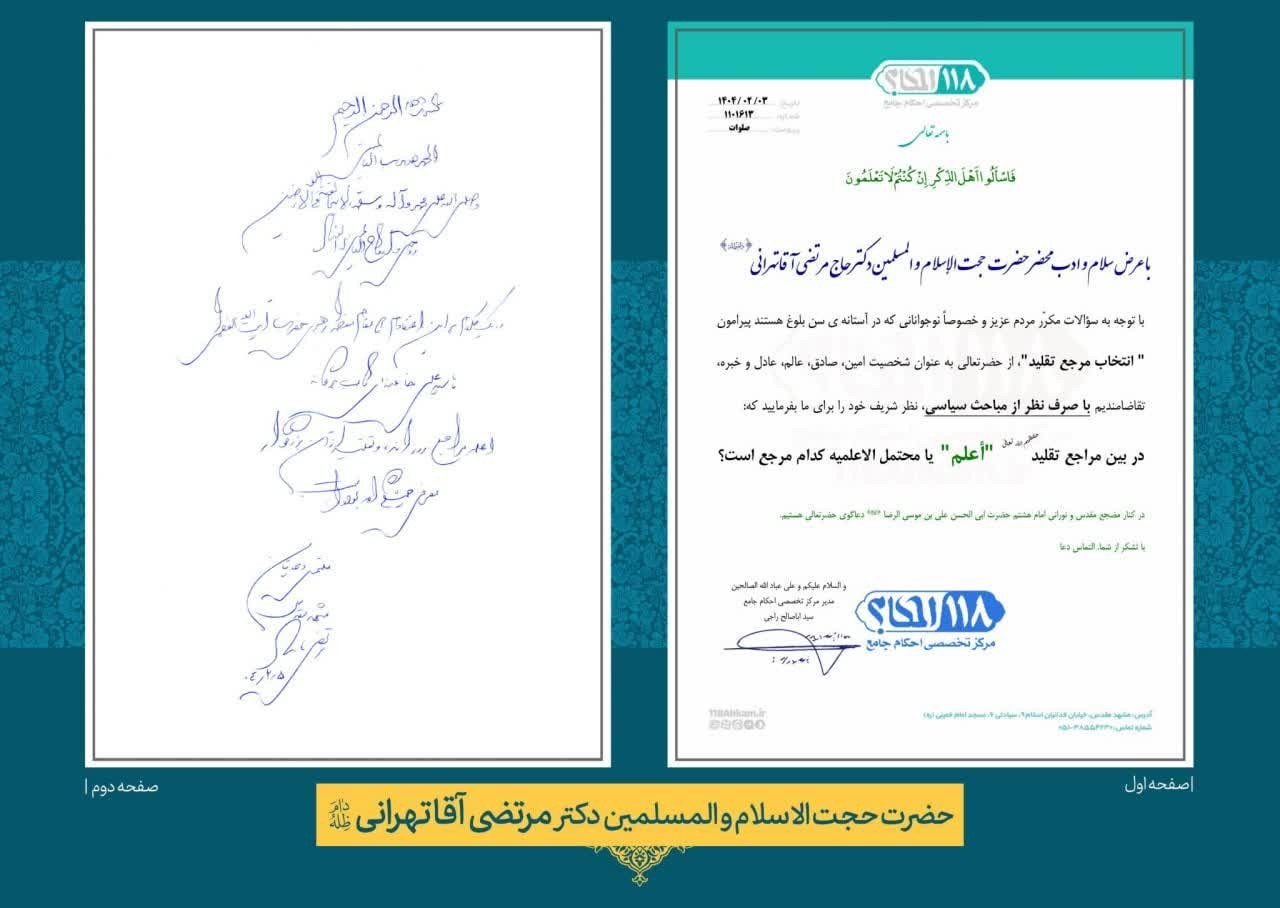 در یک کلام بر این اعتقادم که مقام معظم رهبری حضرت آیت الله العظمی آقا سید علی خامنهای دامتبرکاته اعلم مراجع روزند و تقلید از آن بزرگوار معرفی همیشگیام بوده است.